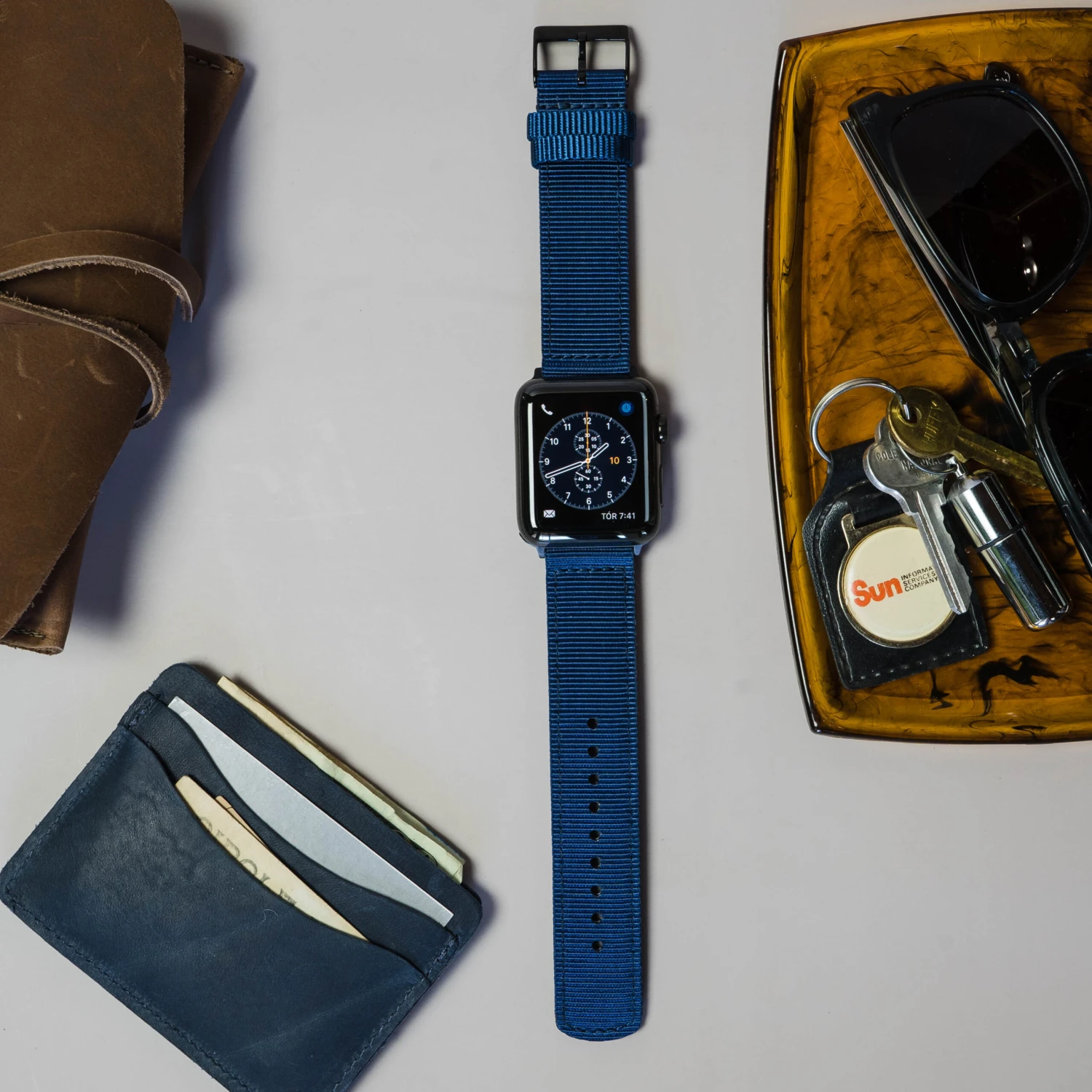 Our Two-piece NATO-style Apple Watch bands are sure to add character and comfort to any Apple Watch. Our nylon straps are water-resistant, colorfast, and feature two nylon keeper loops for a more comfortable fit. Please be aware that due to the sturdy dual-layer construction, our two-piece NATO-style straps do have a stiffer feel that softens up over time.