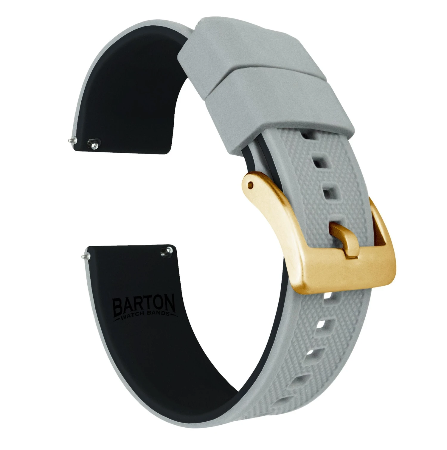 Our Elite Silicone Quick Release watch straps feature a premium textured top, a 316L surgical grade brushed stainless steel buckle and a 2mm taper from watch head to buckle. Each Elite Silicone band also comes standard with two included lengths to assure they will be a perfect fit for almost anyone. Swap out in just a few seconds and without tools! Pair this silicone rubber watch band with our Leather or Canvas quick release bands to take full advantage of the opportunity to ‘Switch it Up’ on the go.