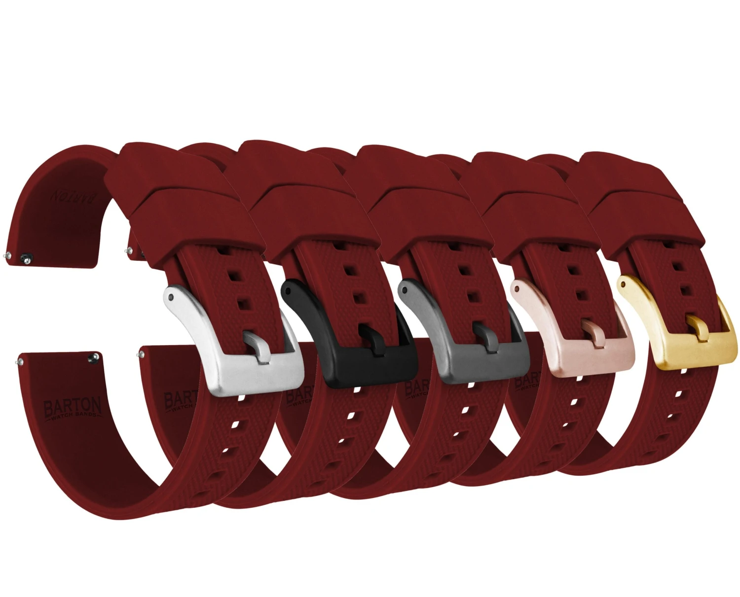 Our Elite Silicone Quick Release watch straps feature a premium textured top, a 316L surgical grade brushed stainless steel buckle and a 2mm taper from watch head to buckle. Each Elite Silicone band also comes standard with two included lengths to assure they will be a perfect fit for almost anyone. Swap out in just a few seconds and without tools! Pair this silicone rubber watch band with our Leather or Canvas quick release bands to take full advantage of the opportunity to ‘Switch it Up’ on the go.