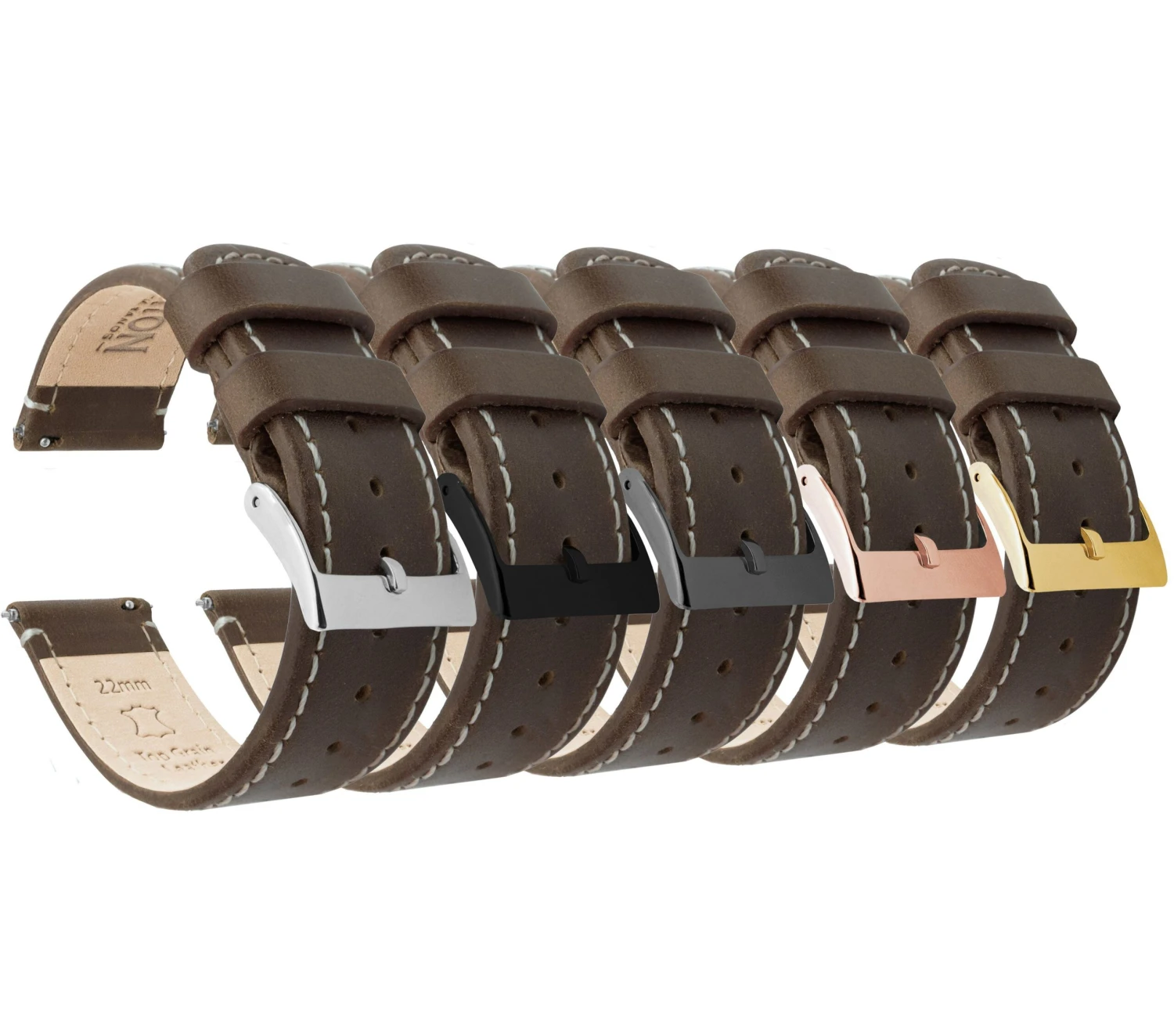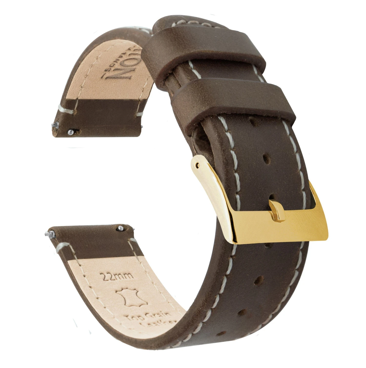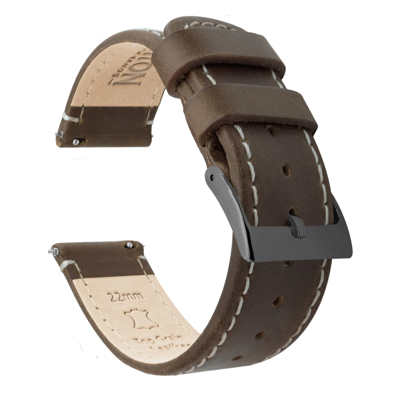 Our saddle brown Leather Quick Release watch bands install in less time than it takes to shake a martini. Crafted from hand-selected top grain leather, this truly is “The Strap Your Watch Deserves”. Pair this brown leather watch strap with our Silicone or Canvas Quick Release to take full advantage of the opportunity to ‘Switch it Up’ between your workplace and the gym.
