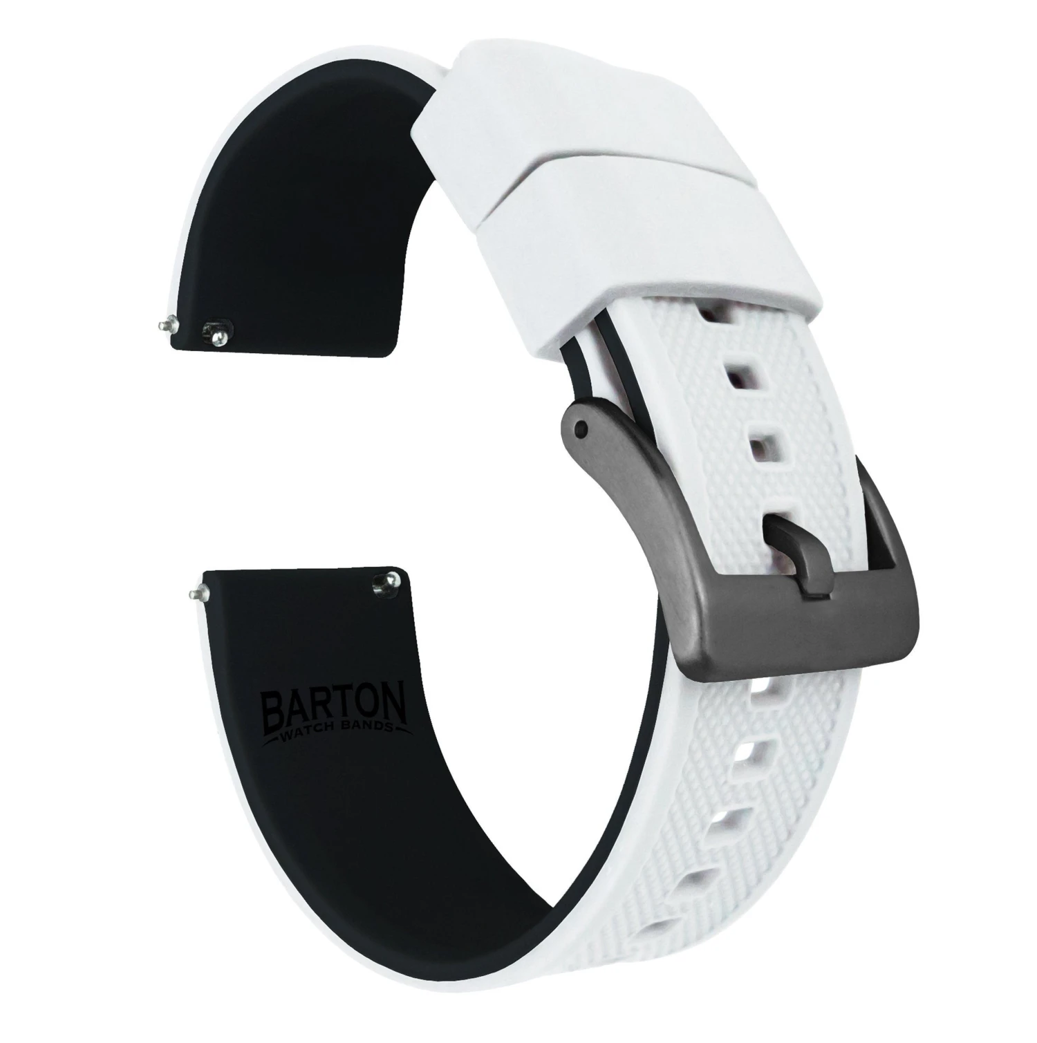 Our Elite Silicone Quick Release watch straps feature a premium textured top, a 316L surgical grade brushed stainless steel buckle and a 2mm taper from watch head to buckle. Each band also comes standard with two included lengths to assure they will be a perfect fit for nearly anyone. Swap out in just a few seconds and without tools! Pair this silicone rubber watch band with our Leather or Canvas quick release bands to take full advantage of the opportunity to ‘Switch it Up’ on the go.